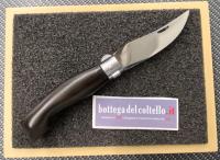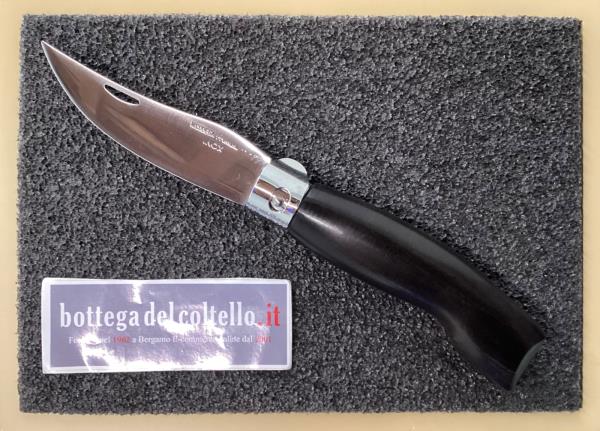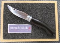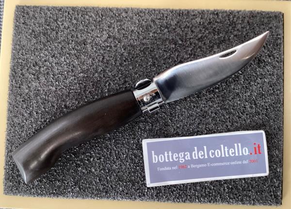 Coltello Codega chiudibile, forma bergamasco cm 9 inox ebano del modello da pastore, rivisitato con blocco lama in apertura, made in Premana