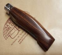 Lama in acciaio al carbonio ( non inox ), blocco lama, impugnatura in legno esotico Lunghezza totale cm 24,5, lama cm 11, chiuso cm 13,5. La ghiera blocca lama può essere cromata lucida o satinata o color ottone a seconda della disponbilità. L'impugnatura può avere striature naturali diverse da quelle riprodotte nell'immagine.