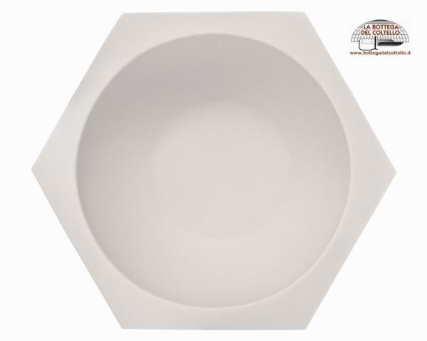 Muhle art. RN HXG Ciotola per rasatura Hexagon in porcellana biscuit bianca. Dimensioni: 105 mm x 90 mm x 55 mm, peso: 220 gr. Confezione: scatola di cartoncino. La confezione include solo la ciotola!