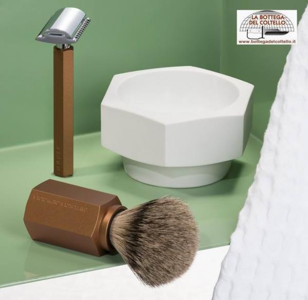 Accessori barba, Ciotola Hexagon from Muhle, design di Mark Braun: sei angoli, bellezza simmetrica in porcellana bianca biscuit.