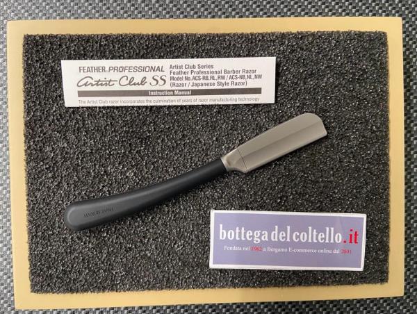 La versione Shavette ispirata dal Kamisori giapponese, a lama fissa, serie Artist Club SS. Le lamette non sono incluse, acquistabili separatamente tutte le versioni di lamette Feather per shavette Feather. Il peso del rasoio è sufficiente per radersi. La punta arrotondata è delicata sulla pelle. Ottima presa e tenuta. Il manico offre una presa salda, indipendentemente da dove tieni.