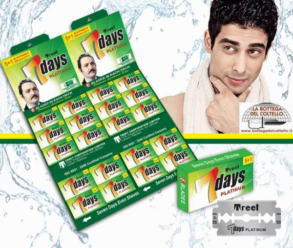 Lamette da barba Treet Seven days PlatinumPacchetto con sei lamette inossidabili Treet 7 days Platinum.