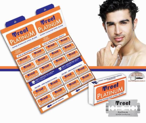 Queste lamette di acciaio inossidabile hanno il tagliente con uno speciale trattamento Platinum chromium e PTFE. Questi fattori aiutano a migliorare la durata, ad addolcire il taglio e offrono un comfort ottimale della rasatura. E' un prodotto Treet Corporation Ltd. Made in Pakistan.