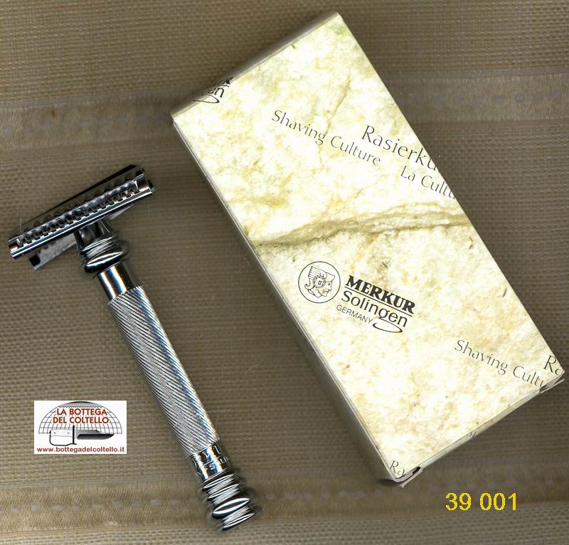 Merkur Rasoio tradizionale cromato: la forma tradizionale del rasoio da barba, con testina piena, cromato, finitura brillante.