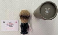 Muhle Classic art. 25#95K256 Il pregevole ciuffo in tasso ha una banda nera naturale. Impugnatura in resina. Altezza totale mm. 110, manico mm. 50