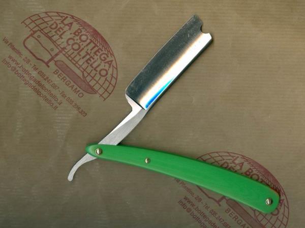 Rasoi a mano libera artigianali di Emidio D'Astolfo - Replica tecnica di Wade & Butcher per barbieri. 8/8", manico G10 verde.