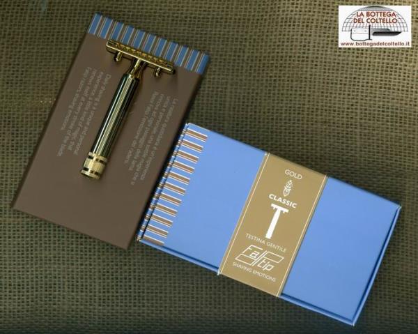 Rasoio da barba classico a lametta, pettine chiuso, finitura dorata, lunghezza stelo mm 80 Fatip art. 42124 prodotto italiano