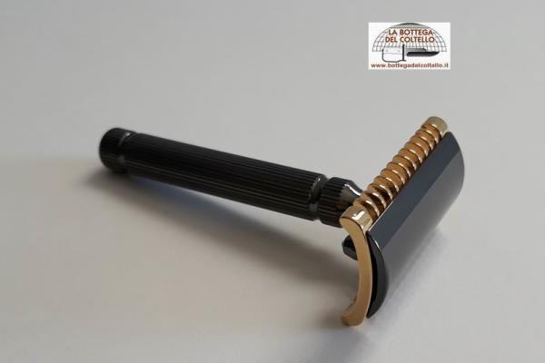 Il rasoio PICCOLO, sicuramente un’icona per tanti appassionati, si presenta in un’inedita versione Black&Gold con il manico e il top della testina nel colore nero metallizzato mentre i due pettini in dotazione hanno la finitura oro. Il risultato finale è veramente elegante e prezioso. Con questo prodotto ogni cultore della rasatura tradizionale potrà provare l’esperienza delle due testine: la testina Originale a pettine aperto assicura che il rasoio funzioni bene con diverse lunghezze di crescita della barba con una rasatura molto accurata e profonda; la testina Gentile a pettine chiuso protegge la pelle dall’esposizione della lametta e addolcisce il suo passaggio, pur garantendo degli ottimi risultati in termini di profondità di rasatura.