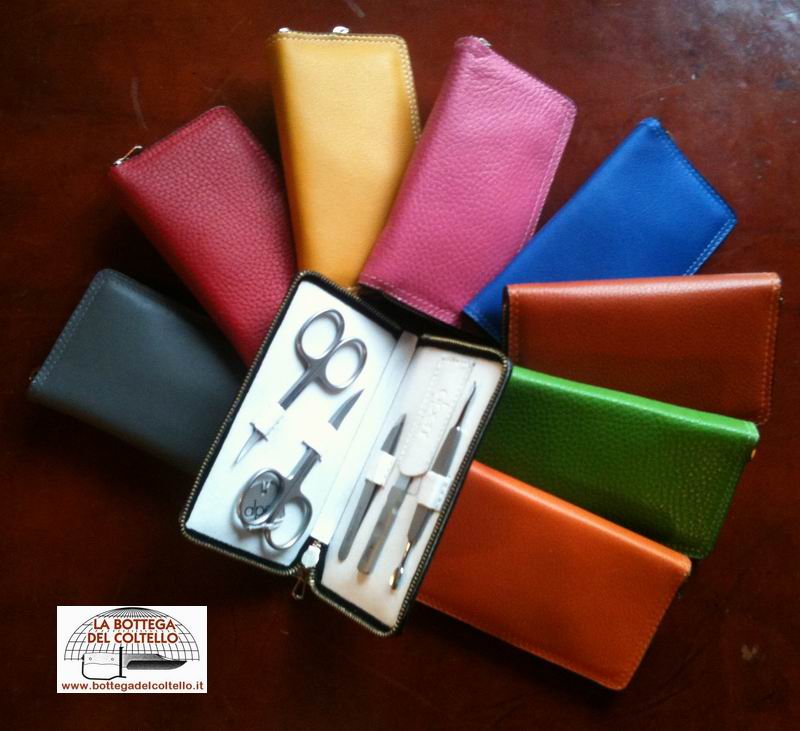 Art 6842 R Vera pelle morbidissima dai colori brillanti, utensili in acciaio inossidabile, finiture accurate, chiusura con cerniera lampo e qualità di taglio Made in Italy caratterizzano questa serie di set per manicure prodotta da Alpen Premana. Il set chiuso misura cm 8 x cm 14. Confezione: scatola di cartoncino.