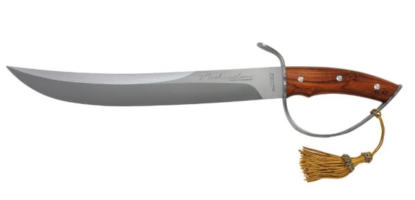 La sciabola misura complessivamente cm 47, lama cm 33, impugnatura in legno Pao Santo . Scatola-espositore in legno.