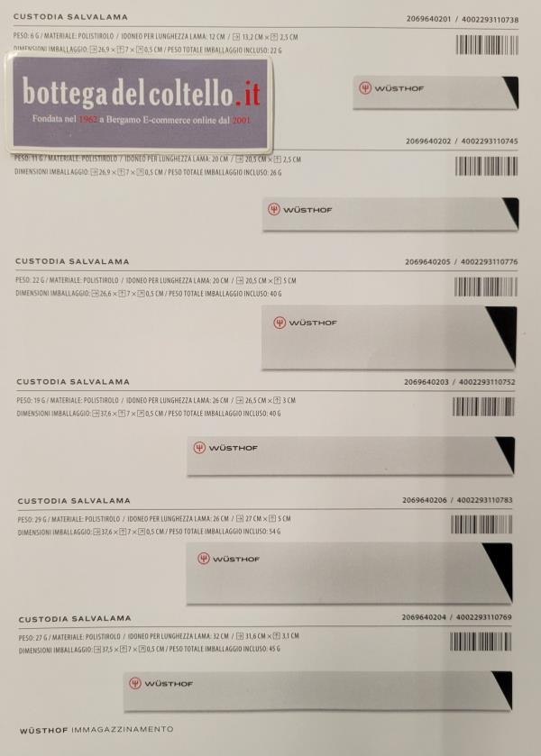 Proteggi lama Wusthof 9920-6L per lame fino a cm. 26 di lunghezza, Wusthof Solingen Germany