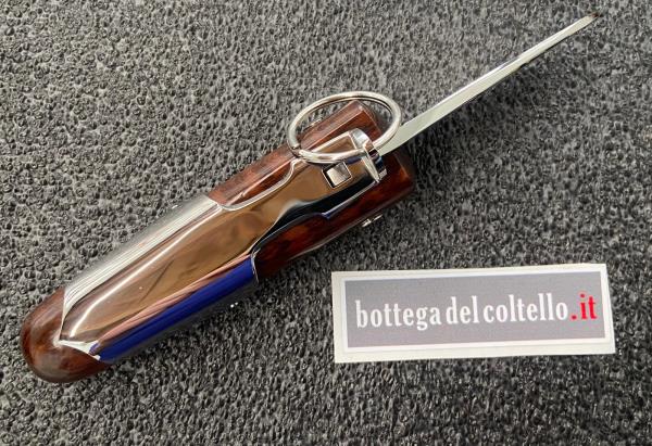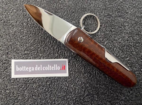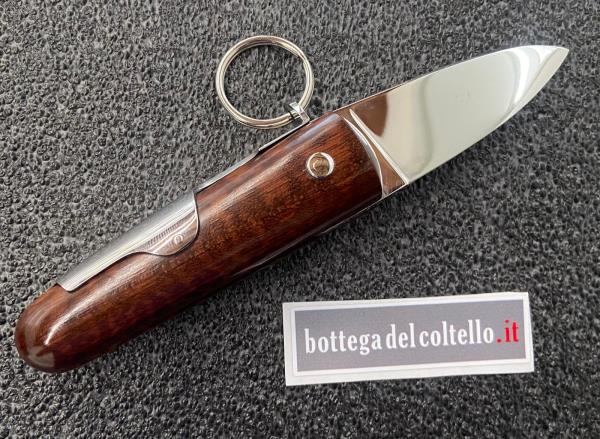 Impugnatura in legno amourette ( Brosimum guianense ), lama in acciaio inossidabile, finitura a specchio.
