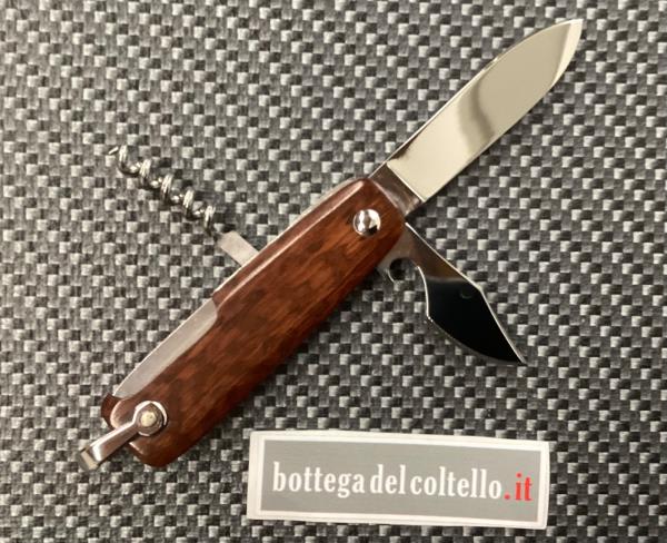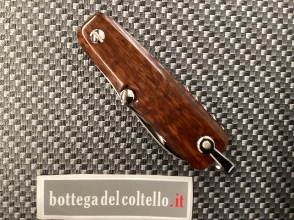 LA LAMA E LE ALTRE FUNZIONI SONO IN ACCIAIO INOSSIDABILE, L' IMPUGNATURA IN AMOURETTE ( Brosimum guianense ).