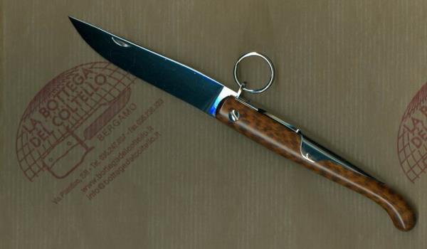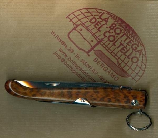 Lama in acciaio inossidabile lucidata a specchio e rifinita a mano. Impugnatura in amourette (legno serpente). Confezione: foderino. L'impugnatura può avere striature naturali diverse da quelle riprodotte nell'immagine. Dimensioni ~: lunghezza totale mm 215, lama mm 90, chiuso mm 12, peso gr 60. Le apparenti imperfezioni che si possono trovare in alcuni dettagli sono solo la conferma dell'esecuzione artigianale, e gli appassionati collezionisti di questo prestigioso marchio ben sanno che il RISULTATO OTTENUTO con l'esecuzione manuale e l'attrezzatura artigianale utilizzata è ampiamente SUPERIORE AL PREZZO RICHIESTO.