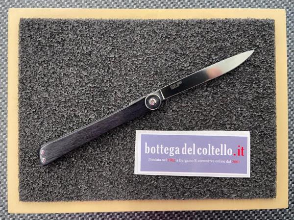 Art DM5900 Lama in acciaio inossidabile VG-10, impugnatura in pakkawood, blocco lama in apertura liner-lock. Lunghezza totale mm 200, lama mm 90, chiuso mm 120. Shun Higo Nokami è dotato di fodero da tasca. Confezione: scatola di cartoncino.