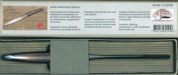 Sknife, coltello damasco da bistecca, esecuzione integrale, è un capolavoro dell'artigianato svizzero.
