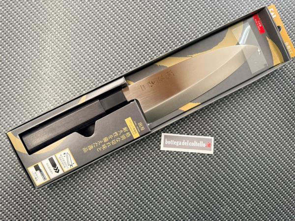 Kai kitchen knife Art AK1103 - DEBA Kinju - Made in Japan. Lama in acciaio inossidabile ad alto tenore di carbonio, finitura satinata, lunghezza mm 180, affilata da una sola parte, uso con la mano destra. Impugnatura in nylon forma esagonale. Confezione: scatola di plastica.