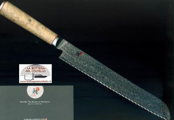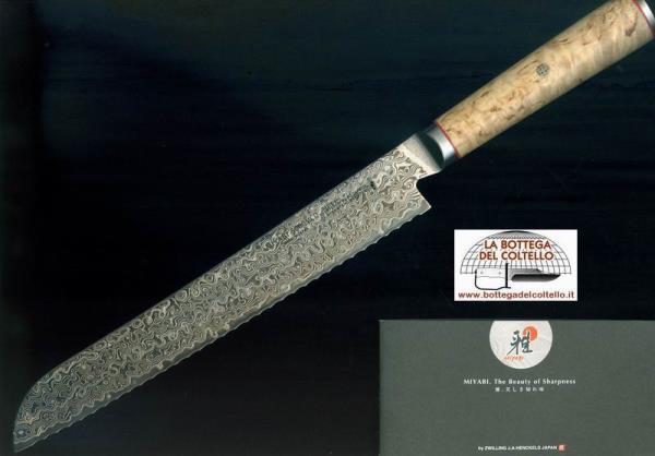Coltello per pane e prodotti da forno Zwilling damasco, capolavoro di tecnica, estetica e funzionalità, unitamente al fascino orientale della lavorazione.