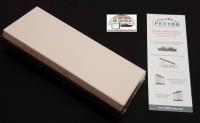 Art. 30931 Pietra ad acqua fabbricata usando la novaculite naturale dell'Arkansas. 1000 grit. Dimensioni: 203,2 x 76,2 x 25,4 mm. Inclusa base antiscivolo in silicone. Confezione: scatola di plastica.