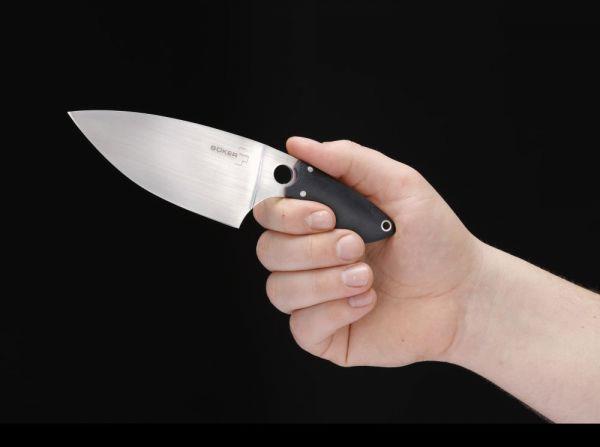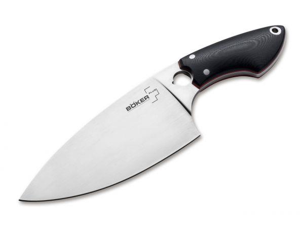 Böker Plus Art. 03BO040 ChefYouGo Coltello da cucina Design: Jesper Voxnæs. Lunghezza totale: 19 cm. Lunghezza lama: 11,5 cm. Spessore della lama: 3 cm. Peso: 115 gr. Materiale lama: 440C. Materiale manico: G10. Coprilama in dotazione. Confezione: scatola di cartoncino nero.