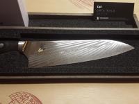 Questa serie di coltelli dal design raffinato, grazie alle caratteristiche particolari dei materiali e al processo produttivo tecnicamente complesso col quale vengono realizzati, si colloca nella classe extralusso. Le lame lucidate a specchio presentano un decoro damascato a raggi; sono realizzate con due diverse qualità di acciaio - VG2 e VG10 - legate per formare un acciaio Damasco a 72 strati. La complessa lavorazione degli strati delle due qualità d'acciaio produce una lama con prestazioni di taglio eccezionalmente durature nel tempo. Il manico è in legno pakka, legno ridotto e impregnato con resine, particolarmente resistente, grigio-nero screziato, che valorizza ulteriormente la bellezza del coltello; la forma ergonomica e le linee arrotondate garantiscono un'impugnatura perfetta. Il codolo forgiato nel manico del coltello conferisce eccellenti caratteristiche di stabilità ed equilibrio, fungendo da contrappeso ottimale alla lama.