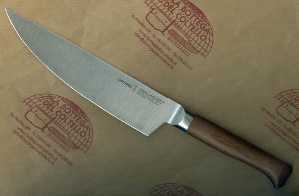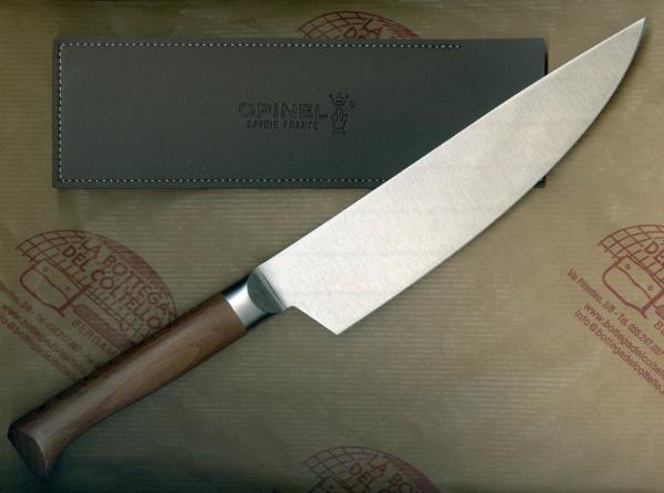 Opinel, Couteau Chef Made in France. Taglia, trita, affetta. 100% forgiato in acciaio inossidabile X50CrMoV15. Grande robustezza e resistenza, elevatissima qualità di taglio. Manico in legno di faggio resistente all'acqua. Lama cm 20, spessore mm 3, rigida e stabile. Confezione: scatola di cartoncino blu. Per mantenere tutte le qualità di questo coltello straordinario si raccomanda di lavarlo esclusivamente a mano e di asciugarlo immediatamente.