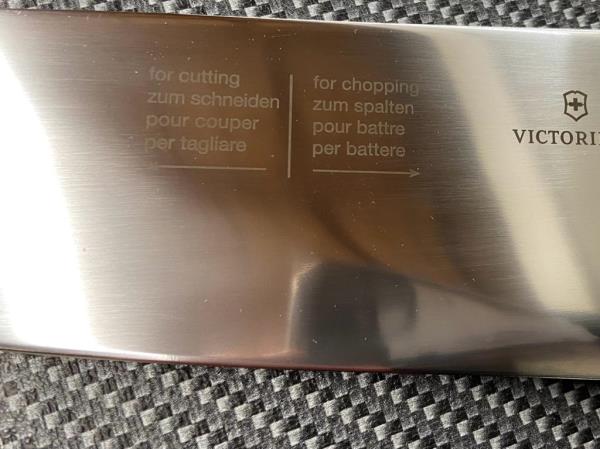 Questo coltello pesante - detto "da colpo e mezzo colpo" - adatto al taglio delle ossa, utilizzando la parte di tagliente dal manico a metà lunghezza della lama circa, e taglio delle carni utilizzando la parte di tagliente da metà lama circa, fino alla punta.