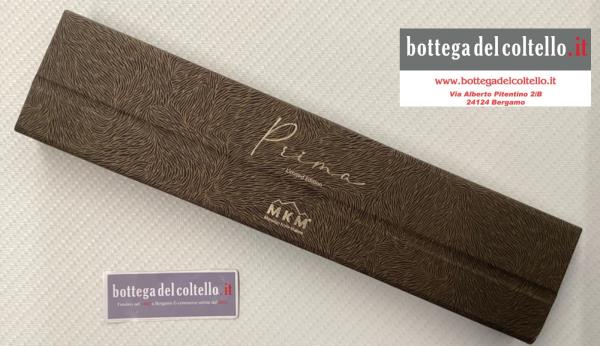 MKM Prima damascus limited Gyuto PRGY-CFRG, la prima limited edition di coltelli da cucina realizzata da MKM Maniago, disegno di Jens Anso, acciaio damasco di Takefu
