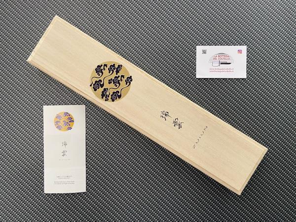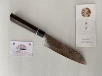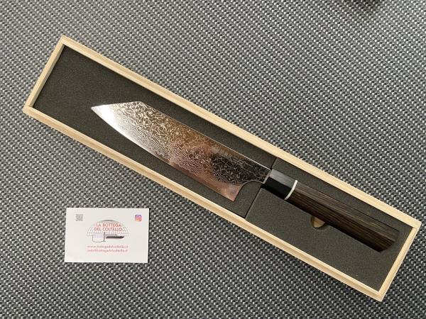 L'uso dell'acciaio della migliore qualità supera i quattro standard principali nella produzione di lame di alta qualità: alto grado di durezza, tenacia, durata e resistenza alla corrosione. Specifiche tecniche pubblicate dal produttore: Lama: SPG2 “Acciaio Damasco” - Manico: legno laminato rinforzato - Lunghezza lama 7in. - Fatto a mano a Seki-city, Giappone - Si consiglia il lavaggio a mano.