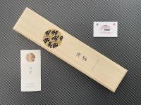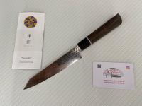 Santoku Kanetsugu Zuiun damasco - La forma della lama riflette la forma tradizionale di "Hamaguri", originata dalla spada Samurai.
