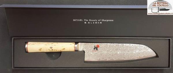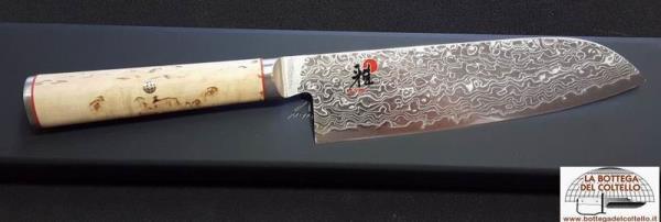 Zwilling Miyabi serie 5000 MCD - Coltello Santoku con lama in damasco inox 101 strati e impugnatura in legno di betulla. Made in Japan.