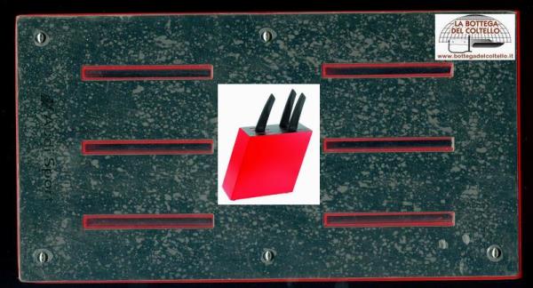 Dimensioni: cm 21 x 22 x 12. Confezione: scatola di cartoncino nero. I coltelli NON sono inclusi.
