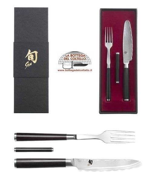 Kai Shun Coltello e forchetta con appoggia posate. La precisione e la durata del tagliente, la bellezza del damasco, l'accuratezza delle finiture!