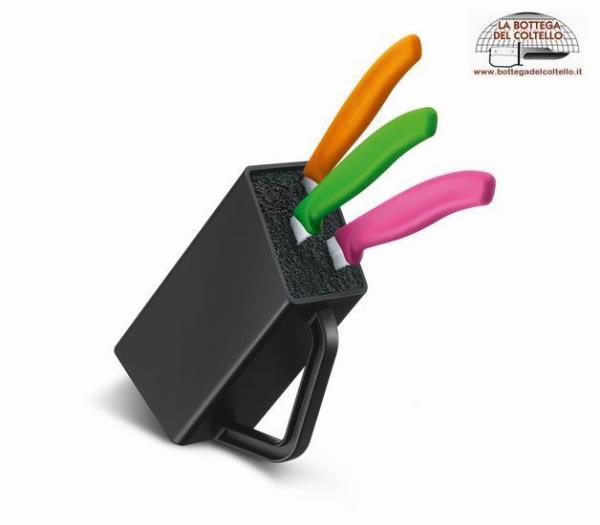 Victorinox Articolo 7.7031.03 Ceppo portacoltelli o utensili - vuoto - con inserto in Nylon, indicato per coltelli da tavola e spelucchini per verdure. Dimensioni 67 x 75 x 155 mm. Peso 500 g. Confezione: scatola di cartoncino. I coltelli non sono inclusi.