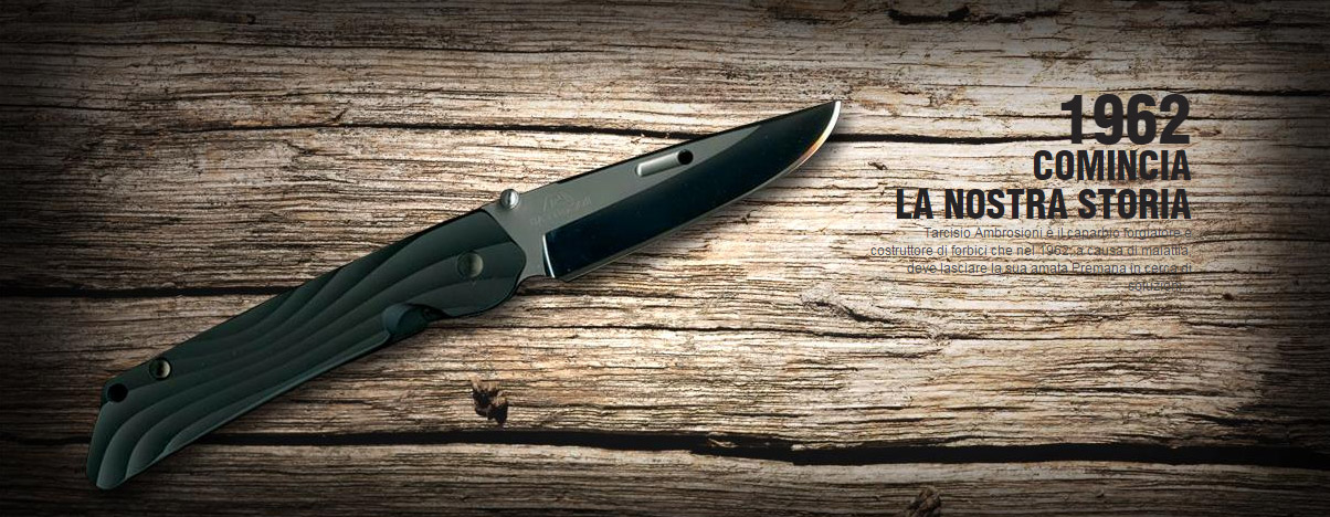 Tutto comincia nel 1962, quando Tarcisio Ambrosioni, costretto a lasciare il suo lavoro e la sua amata Premana a causa di una malattia, decide di rilevare un negozio di affilatura e vendita di coltelleria a Bergamo.