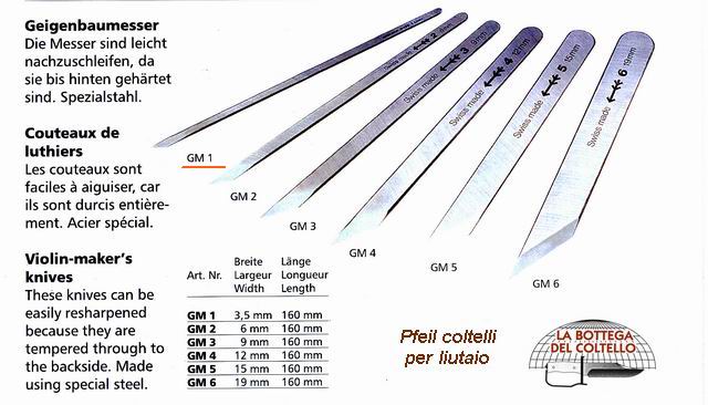 ATTENZIONE: l'immagine è cumulativa, il prezzo si riferisce solo a Coltello liutaio Pfeil GM 1.