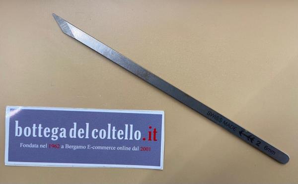 Coltello liutaio Pfeil GM 2. Affilatissimo, in acciaio non inossidabile. Affilatura simmetrica. Larghezza mm 6. Lunghezza mm 160.