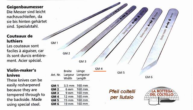 ATTENZIONE: l'immagine è cumulativa, il prezzo si riferisce solo a Coltello liutaio Pfeil GM 4.