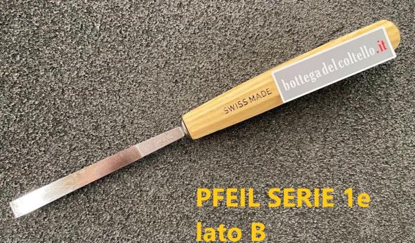 Utilizzato per scolpire pezzi di dimensioni tendenzialmente grandi ma ha l'affilatura su un solo lato della lama. La scelta tra l'affilatura su una sola o su entrambe le facciate della lama è principalmente una questione di preferenze personali. Prodotto in Svizzera da Pfeil.Utensili in acciaio non inossidabile, per la scultura e lavorazione del legno, tutti temprati, con durezza finale tra i 59-61 RC, accuratamente affilati a mano, e tutti dotati di impugnatura in legno. Lunghezza lame 110-135 mm, lunghezza totale degli utensili mm 245-270.