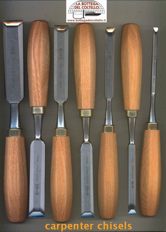 Affilato come un rasoio, angolo di taglio 25°. Impugnatura ottagonale con sezione ovale fatta con legno di olmo svizzero. Lunghezza mm 254, larghezza mm 20.