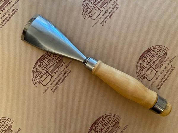 Manico in legno con doppia ghiera. Lunghezza totale mm 295 - Larghezza lama mm 50 - Peso gr 380.
