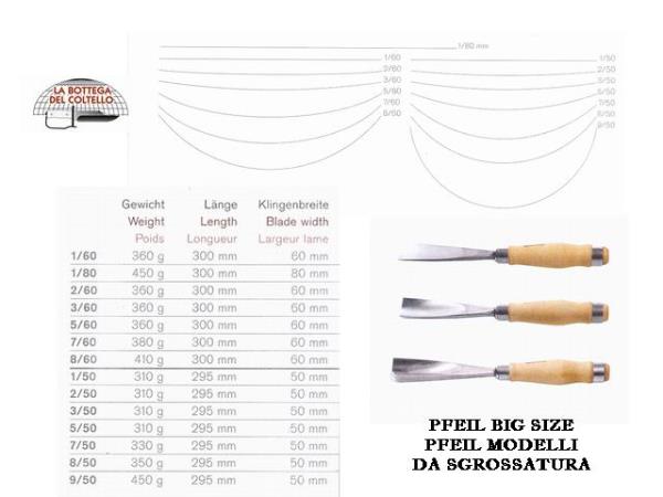 Il prezzo di questo prodotto è stato scontato del 20% rispetto al listino ufficiale in vigore. ATTENZIONE: l'immagine è cumulativa, il prezzo si riferisce solo a Pfeil Sgorbia per sgrossatura legno 7/60.