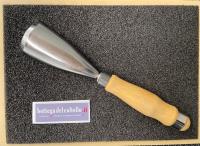 Manico in legno con doppia ghiera. Lunghezza totale mm 295 - Larghezza lama mm 50 - Peso gr 410.