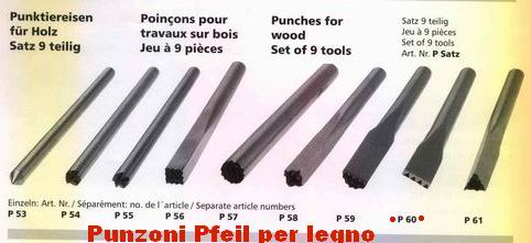 Punzone legno P 60 Pfeil - Punzone in acciaio non inossidabile per legno. Lunghezza mm 120. Swiss made. Disponibile il set P Satz con 9 punzoni.