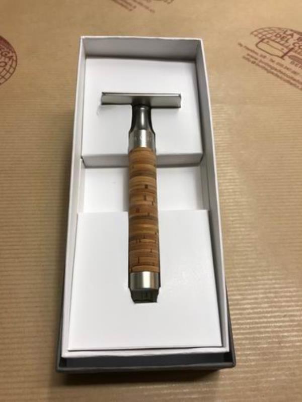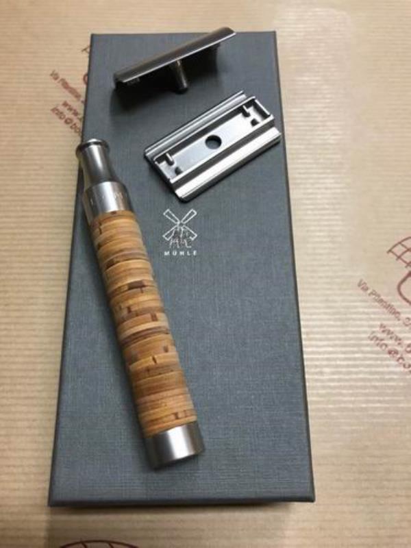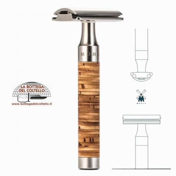 Muhle, Safety Razor ROCCA R 95, closed foam edge, handle material stainless steel birch bark.