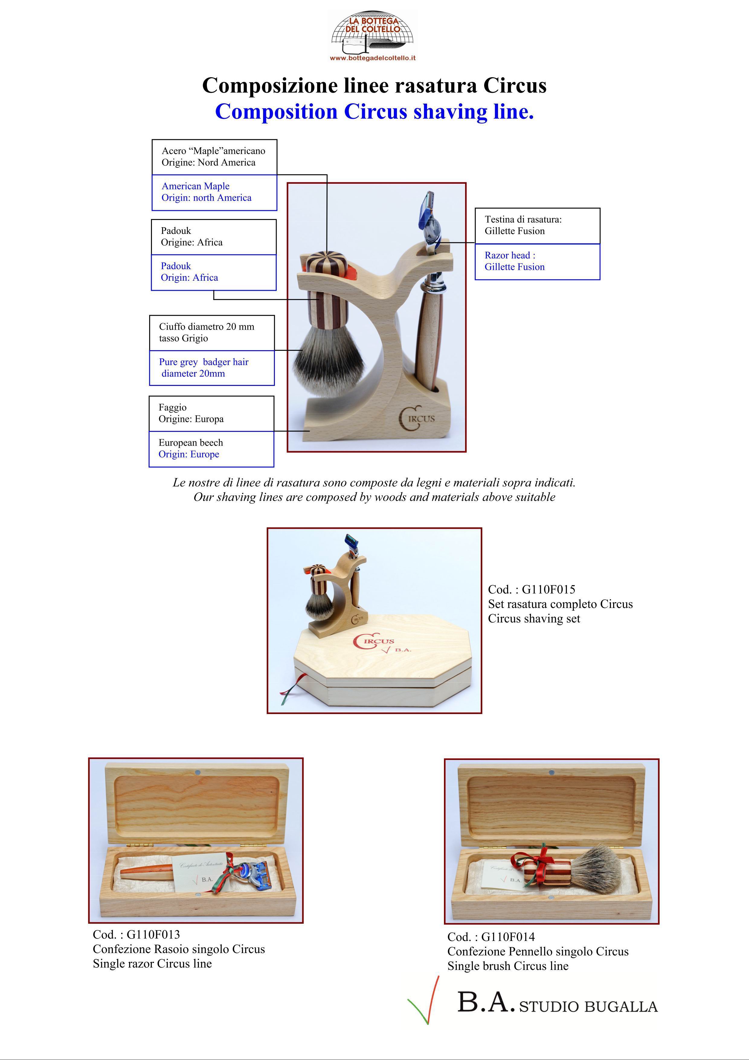TO PAY TRIBUTE TO A GREAT ITALIAN TRADITION BUGALLA HAS CREATED THIS EXCLUSIVE LINE OF BRUSHES AND RAZORS. Brush resulting from circular and manual joining parts of American Maple and Padouk completed with pure badger hair manufactured by hand in Italy. Ash wood box dressed with appreciated fabrics.