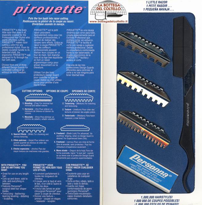 Contains: 1 Pirouette, 4 design guards, 5 hair shaper blades.