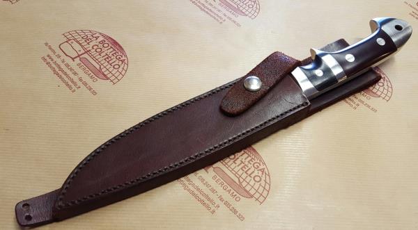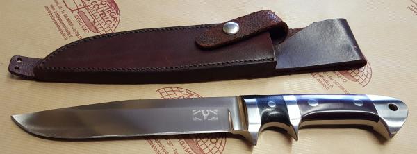 440C stainless steel. Black and burgundi canvas micarta handle. Overall length mm 330.