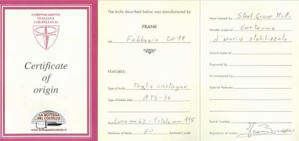 Frank's chestnuts knife manufactured by the Italian knifemaker Franco Bonassi.