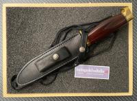 Randall Model 5 custom knife 7" - Stainless steel. Brass guard. Bordeaux micarta handle. Brass knob. Black sheath with stone.
